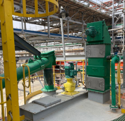 For direct flue gas treatment Techmatic supplies dry lime injection via lean phase pneumatic conveying. Slaked lime is notoriously difficult to convey in small amounts. Experience in this type of application has led to the development of superior dosing equipment and methods to overcome product caking, buildup and deposits due to the conversion of slaked Lime to Calcium Carbonate when the lime reacts with atmospheric Carbon Dioxide in the conveying air.